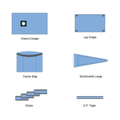 TKR patient pack meant to protect patient from the spread of infection during Knee procedures. Drape designed with the latest generation SMS technology. PROTECTCARE drapes made of medical grade SMS fabric, which meets AAMI Level 3 standards of barrier protection and prevents blood strike through & fluid contamination.